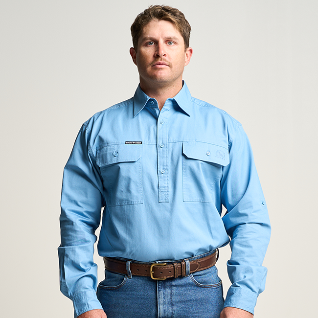 KILCOY | Mens Half Button Long Sleeve Work Shirt | Sky Blue