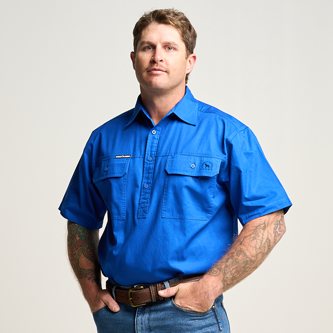 KILCOY | Mens Half Button Long Sleeve Work Shirt | Royal Blue